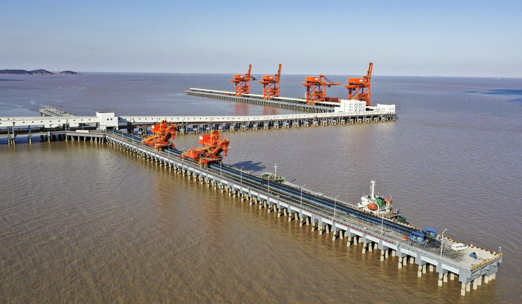 beats365承接的浙江石油化工有限公司4000万吨/年炼化一体化基地配套码头工程干散货码头带式输送机及附属设备系统装置项目,包含8条皮带机及其他附属设备系统,其中4条2200mm大带宽带速5m/s,运量7680t/h,采用中部三驱动布置形式,电机功率3x800kw,单机长度950m。