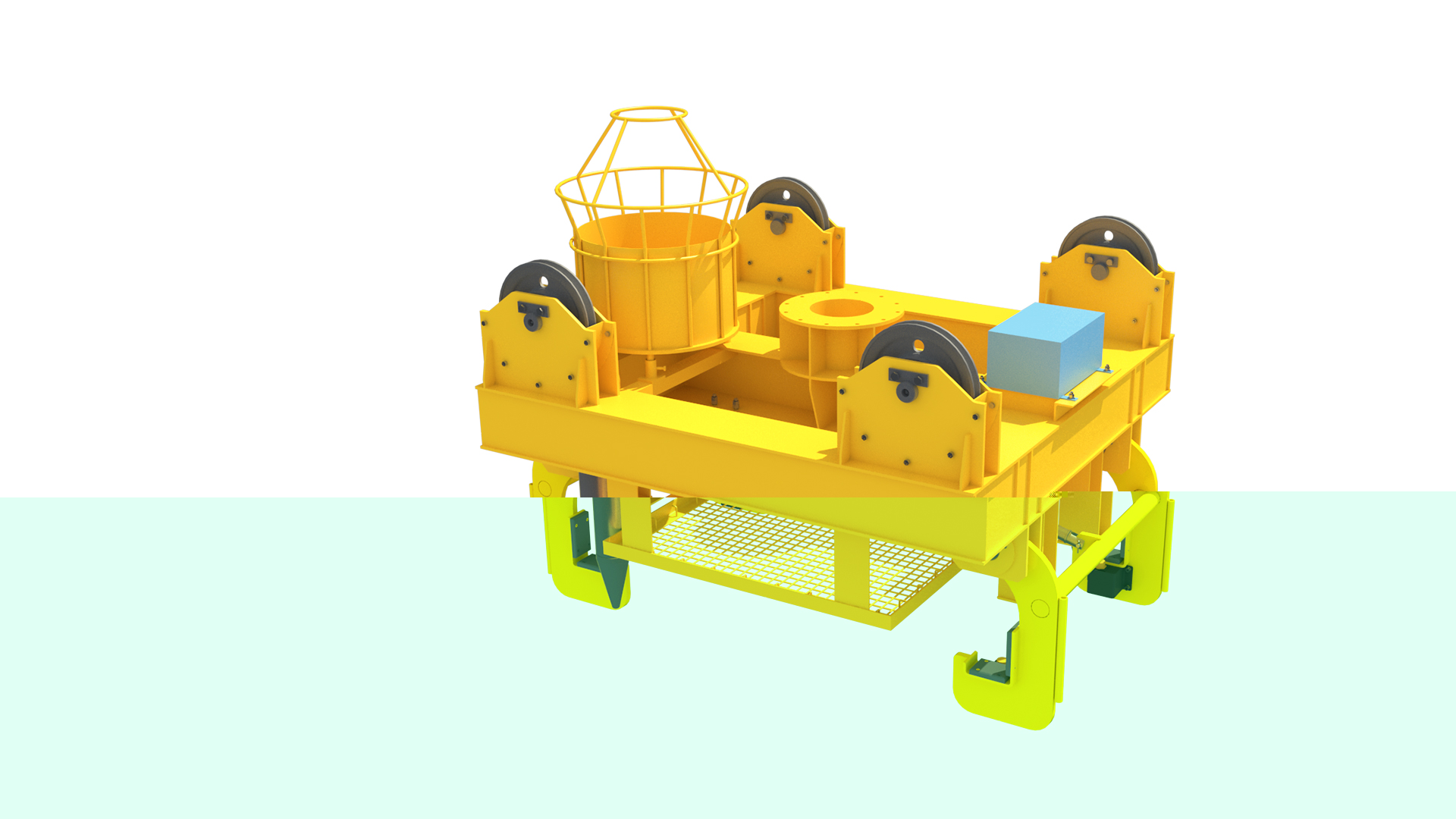 四吊点连接,刚性导柱防摇,运行平稳。